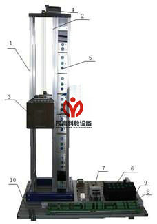 模型由主體框架及導(dǎo)軌、轎箱及門控系統(tǒng)、配重、驅(qū)動(dòng)電機(jī)、外呼按鈕及顯示屏、內(nèi)選按鈕及指示燈和控制系統(tǒng)組成,結(jié)構(gòu)如圖所示。