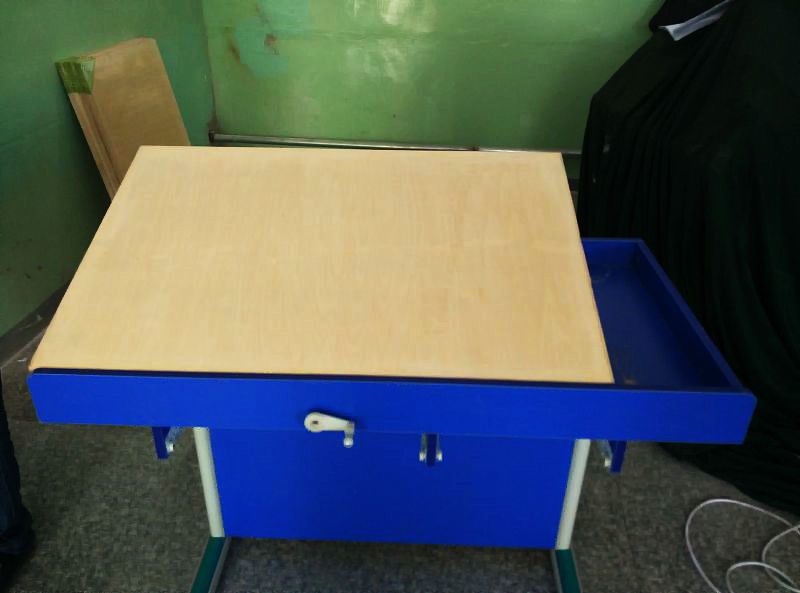 工程繪圖桌是根據(jù)制圖課學(xué)習(xí)的要求設(shè)計(jì)的,符合人體工程學(xué),設(shè)計(jì)新穎,穩(wěn)定可靠,功能齊全。板面斜度具有0-40度范圍可調(diào), 轉(zhuǎn)動(dòng)手柄即可調(diào)節(jié)面板傾角,傳動(dòng)部分為中碳鋼和鋁合金材質(zhì)的螺旋傳動(dòng),堅(jiān)固耐用。臺(tái)面下的抽屜可放文具、資料等。右邊可放置電腦,是一款具有手工畫圖和電腦做圖的一體化工程制圖桌。是各大院校的理想首選制圖實(shí)驗(yàn)室設(shè)備。