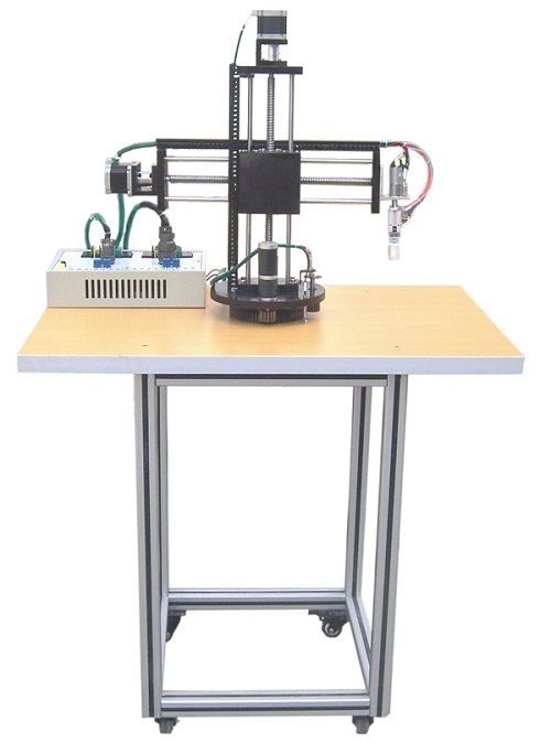 1、機(jī)械手實(shí)驗(yàn)裝置由底座、旋轉(zhuǎn)底座、氣動(dòng)部分、三維(X、Y、Z)運(yùn)動(dòng)機(jī)械及電氣控制等四部分組成。氣動(dòng)部分由電磁閥和氣缸組成。三維運(yùn)動(dòng)機(jī)械部分是一個(gè)采用滾珠絲杠傳動(dòng)的齒輪傳動(dòng)相結(jié)合的模塊化結(jié)構(gòu),用于實(shí)現(xiàn)定位功能。