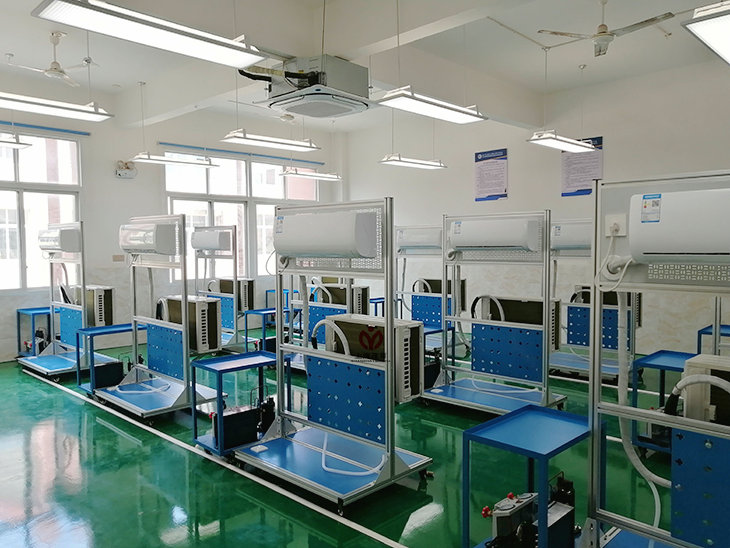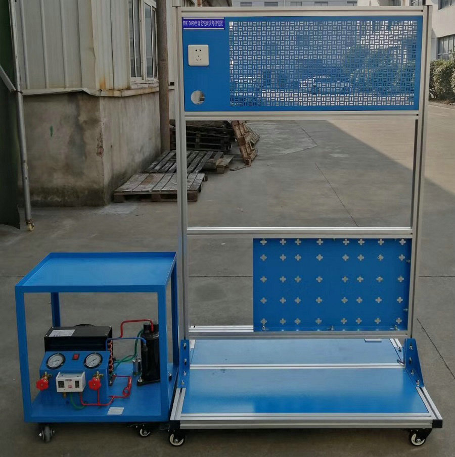 采用鐵質(zhì)框架作為實訓平臺,外型美觀大方。支架結構方便移動安裝,主要是家用分體式空調(diào)的安裝、維修、調(diào)試等實訓操作提供一個很好的平臺。本裝置配有制冷劑回收設備,可對空調(diào)機中的制冷劑進行回收,回收的制冷劑可反復使用,這樣不但可以有效的節(jié)約成本而且可以保護環(huán)境。本裝置還配有便攜式焊炬,制冷工基本的維修工具,可使學生學習維修工具的使用和操作方法。使學生在走出學校后能真正學到實用的維修技能。本裝置適合制冷相關專業(yè)的初、中級技能實訓考核與鑒定。