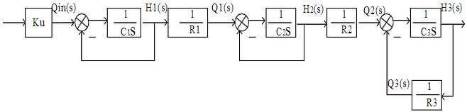 由此可以推導(dǎo)出三容水箱的控制方框圖,如圖4所示: