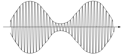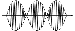 示波器CH1接調制信號(可用帶“鉤”的探頭接到8TP02上),示波器CH2接調幅輸出端(8TP03),即可觀察到調制信號及其對應的DSB信號波形。其波形如圖8-3所示,如果觀察到的DSB波形不對稱,應微調8W01電位器。
