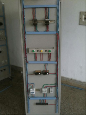 在長(zhǎng)方體的控制柜連接我們的電路圖,要求工藝美觀,實(shí)習(xí)時(shí)我們組分工,因?yàn)殡娐繁容^復(fù)雜,需要熱仔細(xì)檢查,還要達(dá)到美觀的要求,必須有人設(shè)計(jì)線的連接方向,在分工下,每個(gè)人都各盡其責(zé),我們完成了線的連接。
