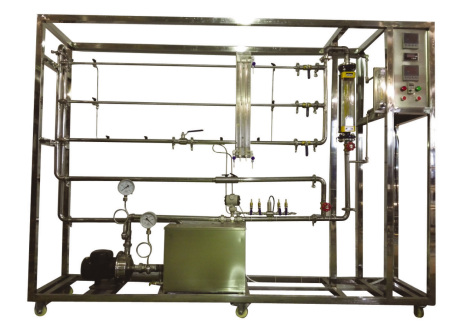1、304不銹鋼光滑管:管內(nèi)徑d—10mm,管長L—1500mm。 2、304不銹鋼粗糙管:管內(nèi)徑d—12mm, 管長L—1500mm,內(nèi)裝不銹鋼螺旋絲。 3、304不銹鋼局部管:管內(nèi)徑d—20mm, 管長L—1500mm,上有不銹鋼閥門一個。 4、流量測量:轉(zhuǎn)子流量計,流量范圍 160~1600 L/h和16~160 L/h 。 5、DN32渦輪流量計:流量范圍1~15 m3/h,分辨率0.01 m3/h,4-20mA遠傳輸出數(shù)字顯示,流量檢測機構(gòu)。 6、壓差傳感器:量程0~150KPa,4-20mA遠傳輸出,壓差檢測機構(gòu)。 7、文丘里流量計:文丘里喉徑:Φ13mm,304不銹鋼。 8、溫度傳感器:Pt100,分辨率0.1℃,精度0.5%。 9、功率變送器、智能功率數(shù)字顯示儀。 10、玻璃倒U型壓差計,0--600H2O。 11、泵進口壓力:指針示真空表,測量范圍-0.1-0MPa;泵出口壓力:指針示壓力表, 測量范圍0-0.4MPa 。 12、宇電AI501溫度數(shù)字顯示儀。 宇電AI501流量數(shù)字顯示儀。 宇電AI501壓差數(shù)字顯示儀。 13、304不銹鋼離心泵:功率550W,流量范圍0-7m3/h。 14、水箱:304不銹鋼材質(zhì),容積100L,帶貯水排空底閥,管路循環(huán)回水與泵吸入口間隔板設計。 15、管路:304衛(wèi)生級不銹鋼材質(zhì),采用不銹鋼快裝活接與管路連接;管道活接連接渦輪流量計。 16、閥門:采用304不銹鋼閥和優(yōu)質(zhì)銅閥。 17、電器:接觸器、開關(guān)、漏電保護空氣開關(guān)。 18、304不銹鋼儀表柜:測控、電器設備在實驗架上。 19、304不銹鋼材質(zhì)框架2400*550*1800mm(長×寬×高),帶腳輪及禁錮腳。 20、工程化標識:包含設備位號、管路流向箭頭及標識、閥門位號等工程化設備理 念配套,使學生處于安全的實驗操作環(huán)境中,學會工程化管路標識認知,培養(yǎng)學生 工程化理念。 |