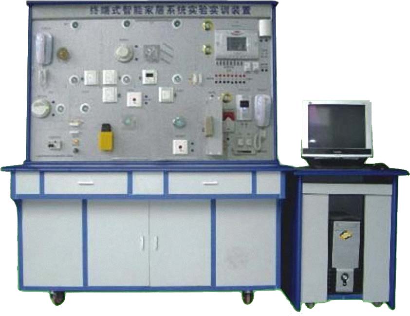 終端式智能家居系統(tǒng)實驗實訓裝置-能進行各種居家智能化系統(tǒng)操作演示、居家智能化系統(tǒng)的設置、居家智能控制主機和的操作方法、居家智能控制主機的工作原理、線路的設計與連接、故障的設置、判斷及排除等實驗和實訓?刂撇糠秩坎捎脤嵨,控制對象采用仿真模型,整個實訓裝置主要由燈光電器、燈控模塊、編程電纜、編程軟件、聲光報警器、感煙探測器、燃氣探測器、管理軟件系統(tǒng)等組成。