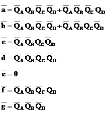 4個D觸發(fā)器的D端作為搶答操作狀態(tài)輸入,設A組先按按鈕,A組的D=1,在CP作用下,QA=1, =0。由于 =0,使門G1輸出為1,G2門輸出為0,封鎖了CP,使其他后按的D狀態(tài)傳不到Q端。當A輸出為1時,其他輸出為0,通過譯碼電路,使數(shù)碼管顯示“A”字符。字符顯示譯碼器的譯碼表如下。| QA QB QC QD | a b c d e f g |