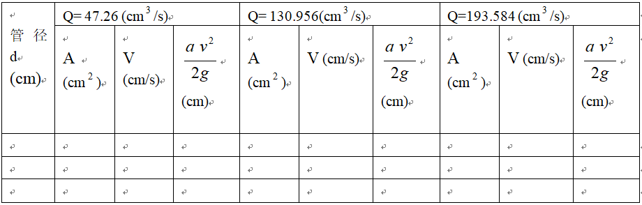 =1,選好基準(zhǔn)面,從已設(shè)置的各斷面的測(cè)壓管中讀出Z+